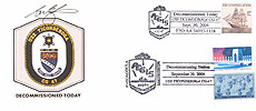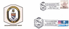 Another Cachet has the 8 sided Radar Shield in Gray with the ship crest in the middle. Underneath it says Decomissioned Today.
